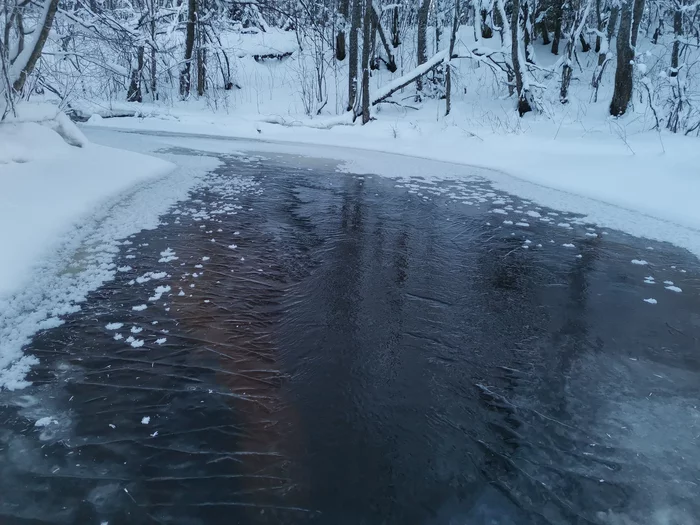 А почему промоины на озере? Родники? Лёд вроде по фоткам сантиметров 7.