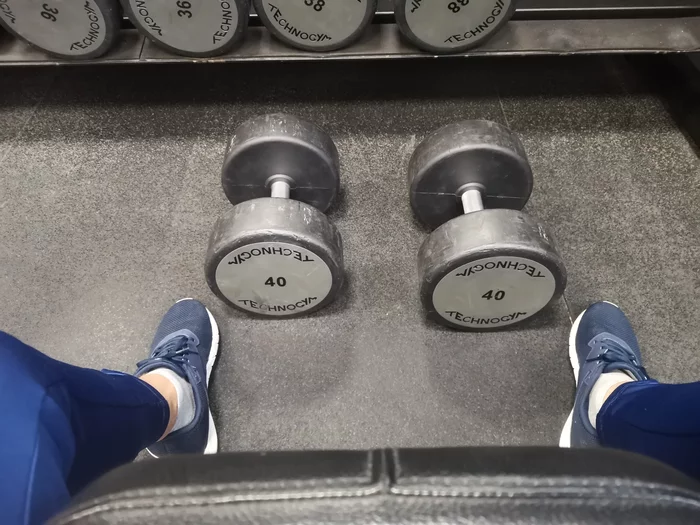 Ещё на трене был-после деревни прилив сил-даже смог потягать гантельки побольше!
