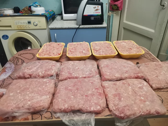 Накрутил сегодня запас фарша месяца на 1.5!!11 порцаек вышло грамм по 800!