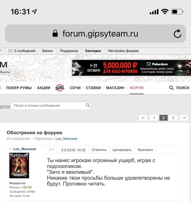 Просим Вас как представителя рума по странам СНГ сообщить его ник и инициировать проверку этого ника на факт "чистоты" игры.