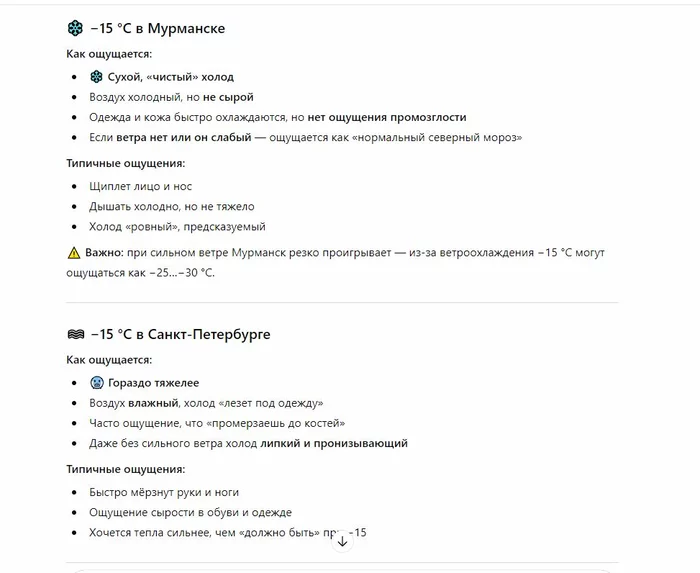 Как человек, переехавший из Мурманска в Петербург - могу сказать, что это не сопоставимо. -15 в Мурманске это обычно вполне комфортная погода. - 15 в спб - это чаще всего пиздец когда ебальник отмерзает напрочь )