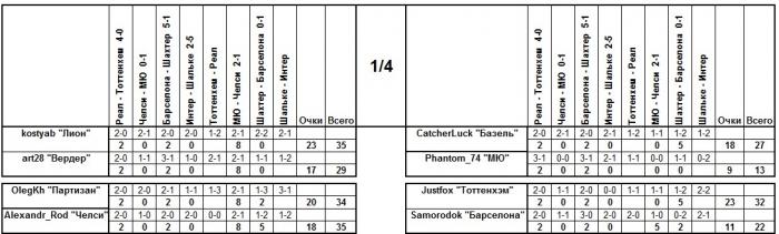 ** - в случае равенства очков, победителем пары признается тот, кто занял более высокое место в группе.