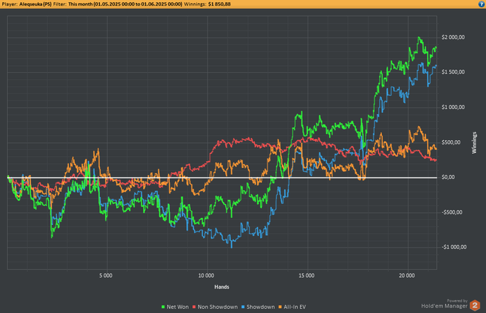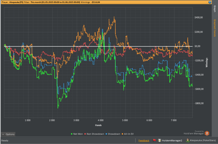 Кажется откатать 100к рук за месяц - не такая простая задача. Чувствую себя измотанным.