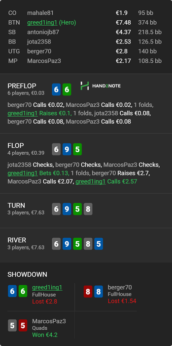 Все по классике, випы ловят первые натсы против моих вторых, потом через пару раздач отдаются говнорегам по 4-й паре, ниты 5бет-пушат 88 вс моих АК СО вс БУ, КК сосут вс J2o ну и так далее.