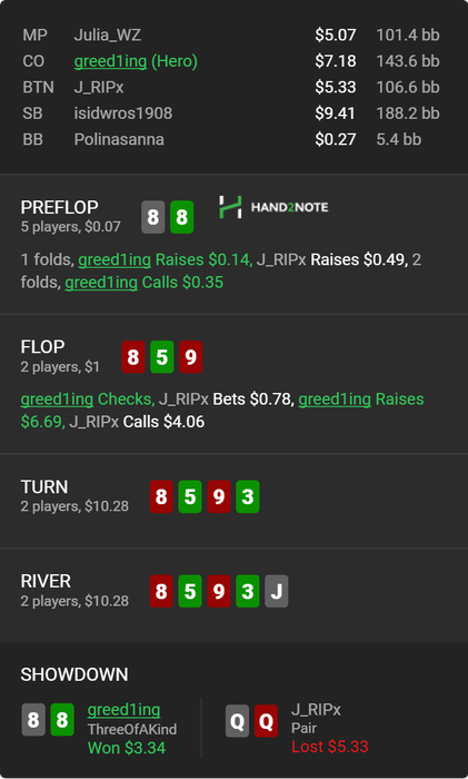 Kazrich, в двоих бы пушил, если бы была ставка+колл, в противном случае мне выгоднее мультпот оставлять и принимать решенее на терне, шансы банка получше