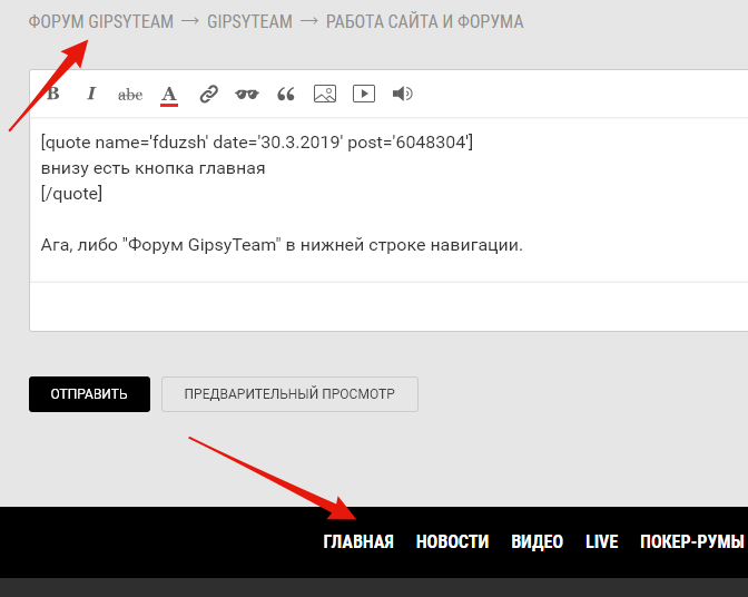 Ага, либо "Форум GipsyTeam" в нижней строке навигации.
