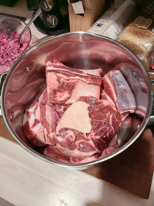 Берём 2,2 кг голени и рёбер.