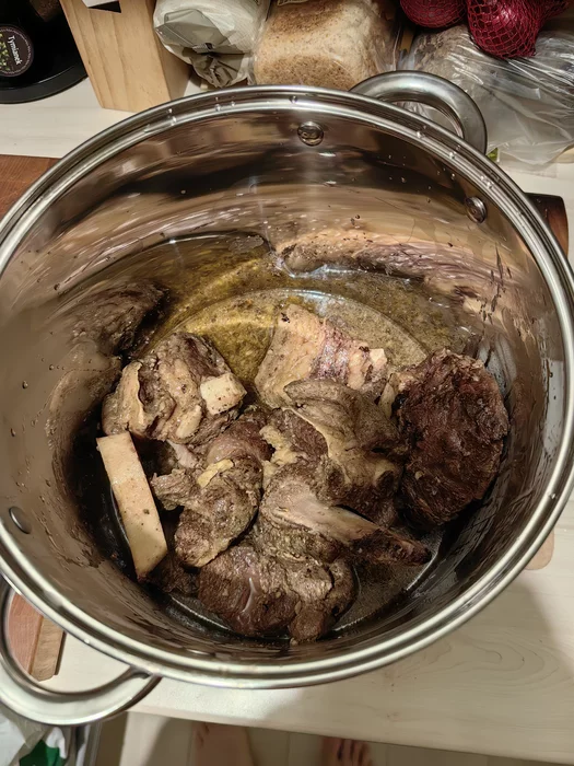 Чат-ЖПТ ещё предлагал отделить кости в самом начале и поварить их отдельно на плите, но я решил не усложнять.