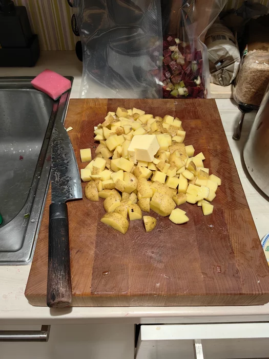 Пока не катаю, решил позаниматься всякой хуйнёй. Посовещавшись с ChatGPT, было принято решение приготовить борщ в су-виде 🤡🤡🤡