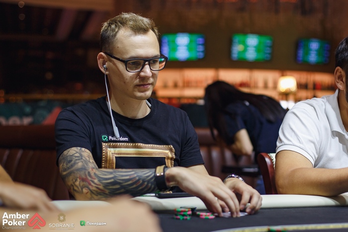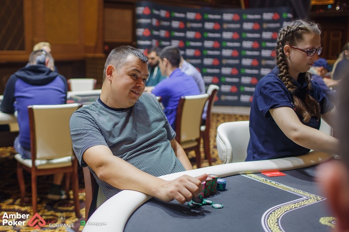 Сергей Чанцев на доске поставил ставку размером в банк 12,000, и Бухаров заплатил. У Чанцев натс .