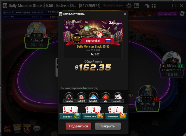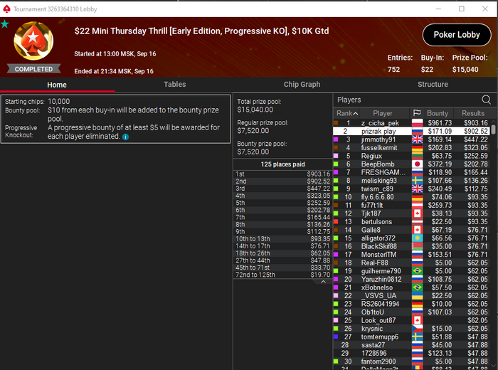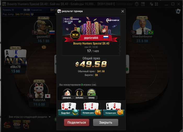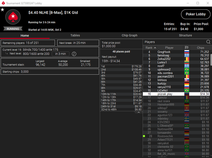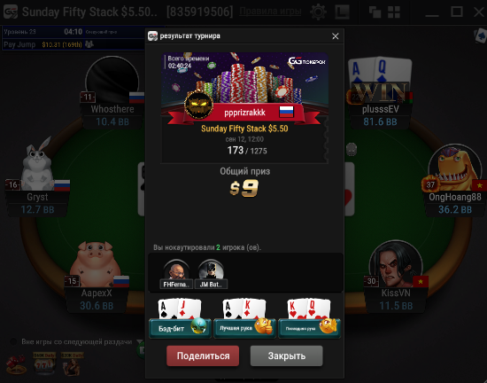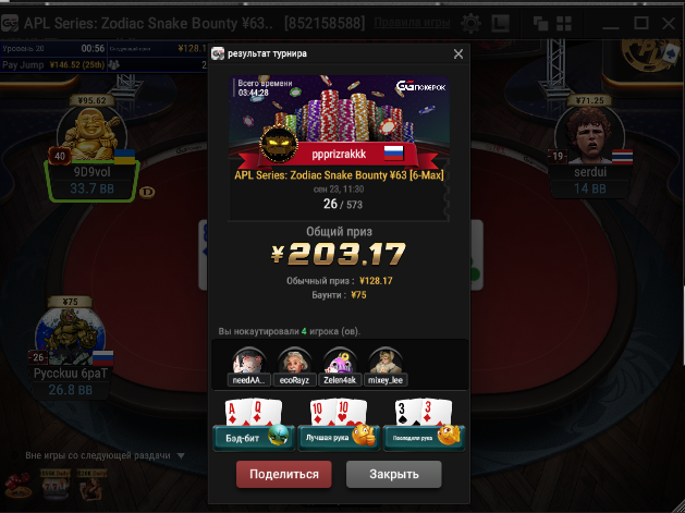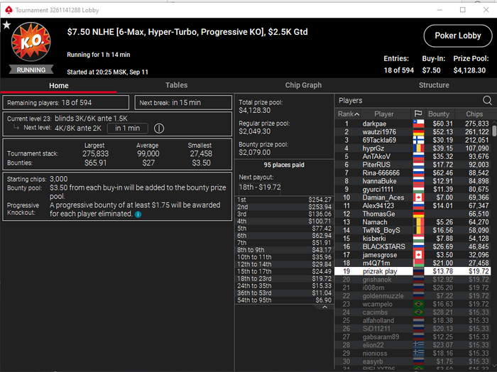 Mihal86, Привет. Все турики на пс,гг и пати от 2.2 до 22$. Регулярные, турбо, ноки. Не играю дорогие с маленькими гарантиями, некоторые гипер-турбо. А так смотри прошлые посты, там в заносах почти все мои турики указаны.