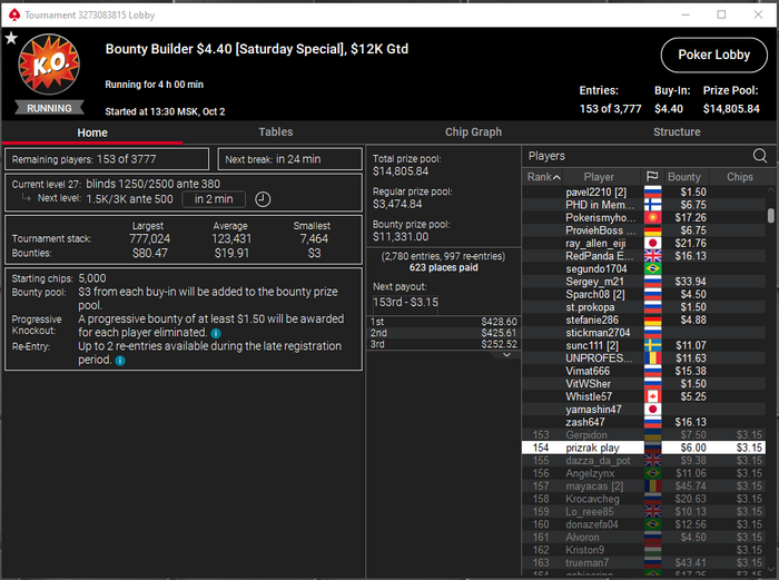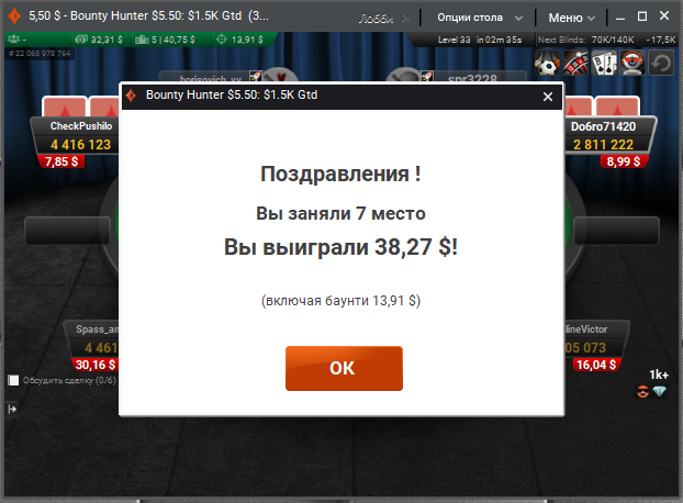 День 27. Добротная сессия. Наконец-то вернулся к прежнему утреннему режиму после вкуповской серии. Сразу с ходу удалось выйти на 3 финалки и в хедзап турика топ загрузки. Жаль что не удалось дожать поляка, но где наше не пропадало) Результат огонь. Сессия +1112.71$. Бр 1762.85$. В банке 352.57$. Оффлайн все ближе