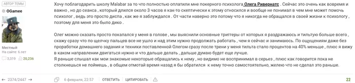 а когда выговорился и поддержали - то ессно всегда будет легче человеку, и он оставит положительный отзыв...... ну как например челу, от которого ушла жена, и он собутыльнику за бутылкой водки выговорился и излил душу - он всегда скажет этому собутыльнику спасибо