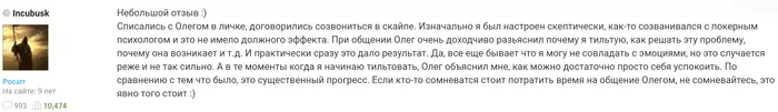 Также Олег периодически проводит 20-минутный разбор психологической базы для опытных игроков в покере по ссылке. На диагностике вы найдете свои слабые места в психологии и получите персональный план действий уже на сегодня.