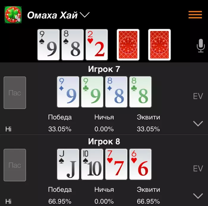 Когда сумма выигрыша приближалась к сотке к нам присоединился единственный компетентный в плане Омахи коллега Виталик. К сожалению для моего бюджета наш персональный банкомат решил именно у него поинтересоваться, что за ебь этот покер и ваще какого?!! Выясняется, что ожидание его руки в районе 30%