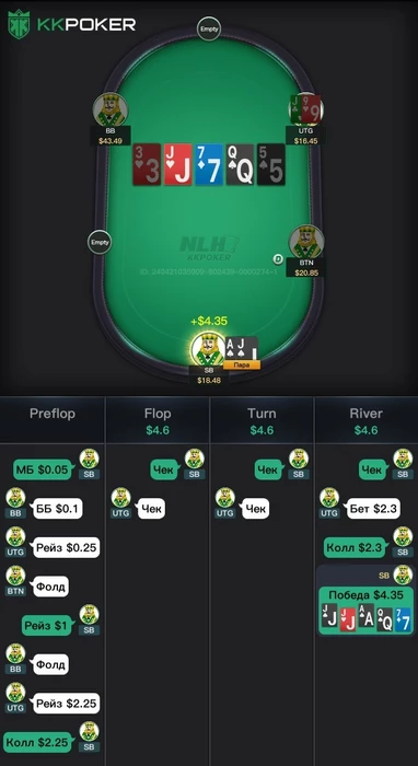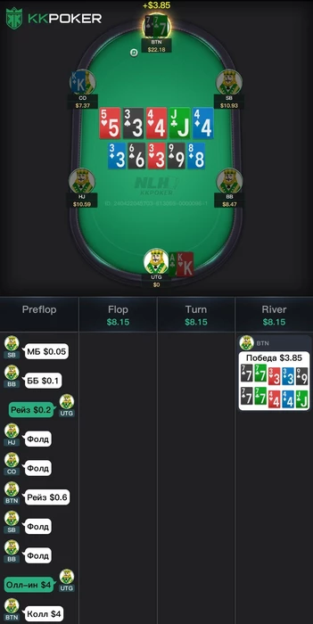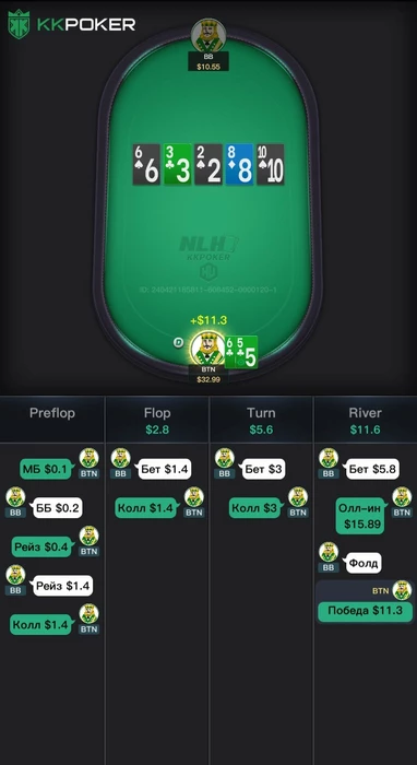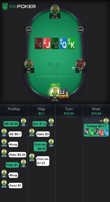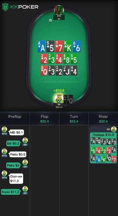 Посмотрел зайчиков, там 5 пик, 5 ривер 🤣 ну чисто чтобы я намотался. Благо хватило мозгов выкинуть ибо там даун без кнопки фолда. Который в год моде.
