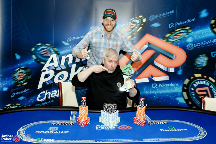 Роберт Файзрахманов с первой поставил олл-ин на . Магомед Нурмагомедов (SB) колл с (28.5 за спиной). Александр Кузнецов (ВВ) свой олл-ин на . Магомед доставил.
