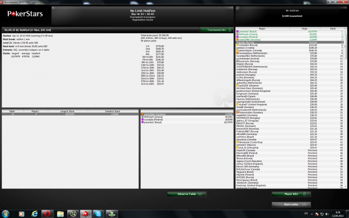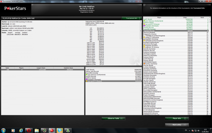 SB SupaJah (2,593) BB Eng_TomaZ (3,680) Blinds: 60/120 Ante 15