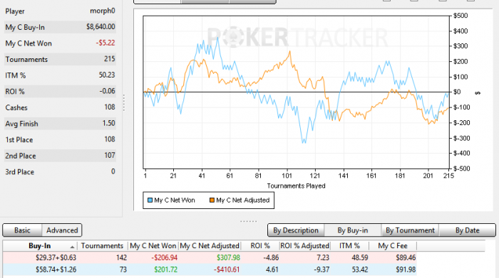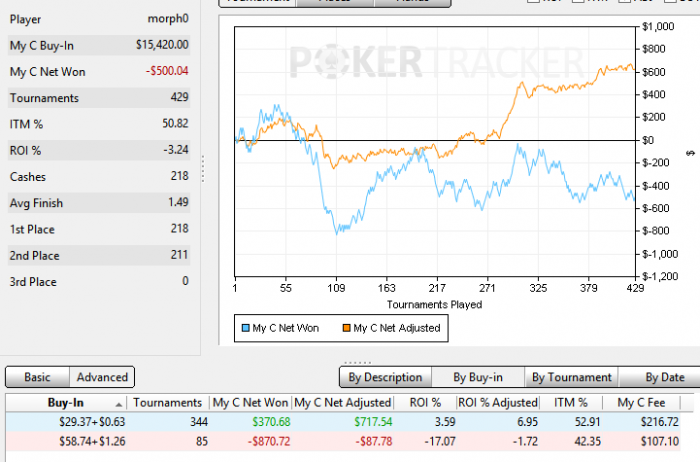 Ну в целом и хрен с ним. Явно день фишей сегодня. Постоянно то не фолдят ничего, то кулера раздают. Все блефкэтчи уперлись в ТП. Завтра постараюсь погриндить перед поездкой в врн. Поедем завтра в ночь. Надо матушкин ДР отпраздновать и родственников навестить. Надеюсь это не сильно помешает гринду.