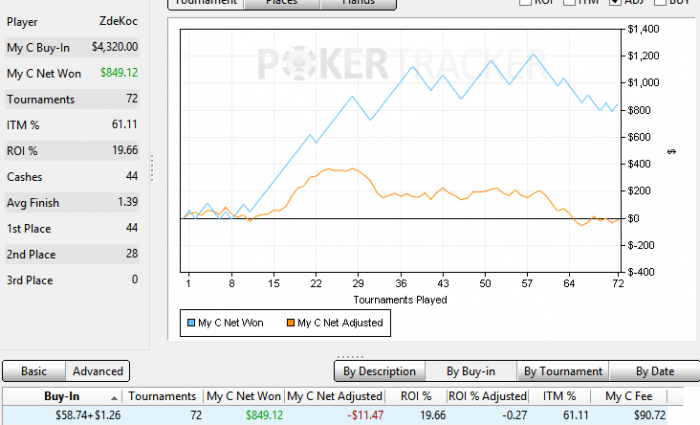 На 60 мне по прежнему почти не дают фишей. Устал биться головой. Сегодня опять ситил Zdekoc. Рейк он со мной явно не побьет. Но перебирает сволочь безбожно.