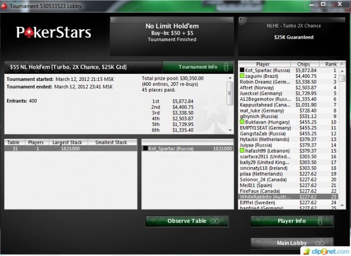 Всем привет=) Появился вчера небольшой повод написать в блог..) в вскр разблочил мтт чтобы поиграть Сандей и проч пиханину, как обычно везде насосал, вылетел 60/7500 в Биге по 22( AK<A9 за оч большой стек), но вчера пришёл вечерком и решил поиграть турбины. И Завози!)