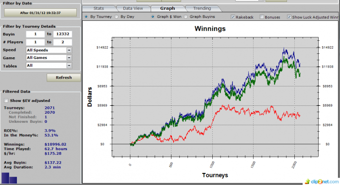 В ХА после жёсткого залива в январе всё пошло как по маслу. Оч хорошо апнуло, в олынах играл без сбоев)) Перебрал тоже прилично. Правда концовочку немного смазал, ну да ладно. В универе учёба закончилась.. Началась практика. Тема диплома-"электронное правительство", поэтому направили в Мин-во информ. технологий. Пока запрягли ходить каждый день, хоть и на 3 часа. Составляю заявки для электронных запросов. Уже чуток надоело, но скоро новое задание дадут. Понял каково же это не прикольно работать)) Каждый день вставать с утра, никуда не уехать на больше чем 2 дня, на буднях нельзя затусить на всю ночь, ибо с утра будешь овощем итд... плюс ко всему за это еще и платят копейки. Так что либо бизнес, либо во власть, как Кац) Придётся первые несколько лет терпеть, конечно, но потом это всё с лихвой окупится. Правда в посл время ознакомившись подробней, хоть и издалека со всей этой политической кухней, понимаю что не хотел бы там вариться. Ненавижу врать, ненавижу кого-либо на*бывать и особенно тех кто это делает, ненавижу прислуживать и либезить, ненавижу предательство. Вроде как чтобы добиться успехов в политике эти качества гораздо важнее чем высокий интеллект, свежесть идей, желание мир сделать лучше. Так что понимаешь, что покер не такая уж и плохая штука. Отпросился вот на неделю, поеду в Киев) Покатаю и отдохну немножко) Любви всем=)