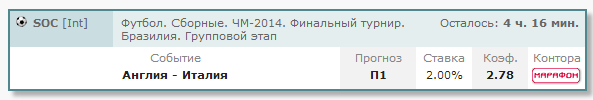 Бразилия - Хорватия. Результат матча : Хорватия (победа). Коэфф.: 13.00