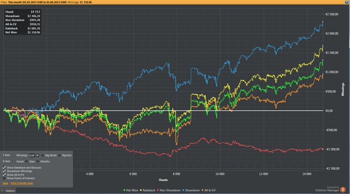 Оформив Найкращий Місяць...-5500 із всіма бонусами враховуючи фліп турнір в якому повезло і я виграв 1050 євро ) а загалом ігрою задоволений .. появилась впевненість у грі ... загалом всім поки що задоволений всім удачі за столами )