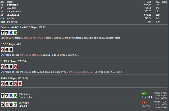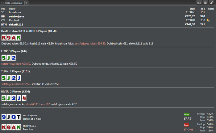 сьогодні був веселий міссклік чомусь в ХМ не сохранилась роздача .. )) був на таких радостях що зловив протів фіша топ сет .. на відносно сухому борді що місклікнув і викинув в 3-бет поті вот я лол ) Сьогодні у Львові начався Альфа-Джаzzzz-Фест раджу всім піти хто фанат або прихильник хорошої музики будуть хороші виконавці буде тривати фестиваль 3 дні ) Ну і пару роздач на кінець ) ну тут нічого особливого просто класна роздача в якій мені показує -ЕВ крім слова найс хенд нічого не скажеш мені цікаво що в цих регулярів або полу дибілів в голові ) максимально чувак добрав ) а то я себе просто залевелив ))) придумав собі якісь такі руки за що і поплатився )