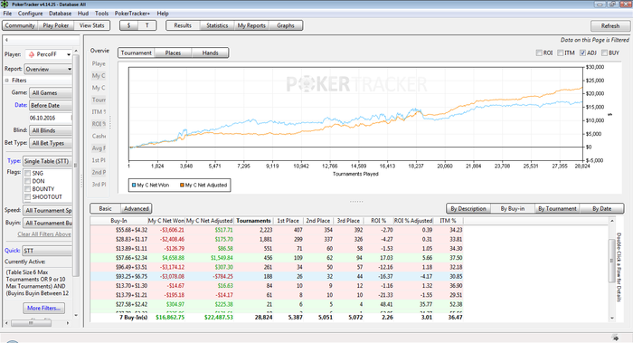Жесткие стрики и недодачи в 2015-2016м, а также провальный переход в спины по $ (и очень хороший по фишкам - но сначало я был без пула, а потом в пуле кэфы по 0.4, а потом 2 месяца без дележки и обнуление результатов с недодачей в -3K$), серьезно открыли мне глаза на тот подход к покеру, который подходит лично мне. И использую я подход весь этот год по сегодняшний день.