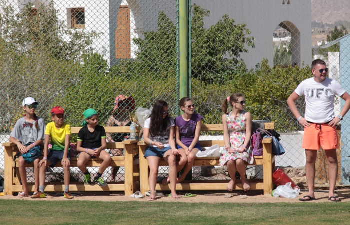 Играли пять на пять - четыре в поле, один на воротах. Два тайма по 10 минут с любым количеством замен. Газон был не то чтобы очень - неровный, с небольшими проплешинами, но в пустыне, как говорится, чем богаты! Начали в 10:30, чтобы было не шибко жако. Собралось в итоге четыре команды - UPS, Петербург, "Ветерок" и сборная Италии, составленная из работников казино. Сперва думали сыграть по олимпийской системе: два полуфинала и финал, но потом склонились к круговой.