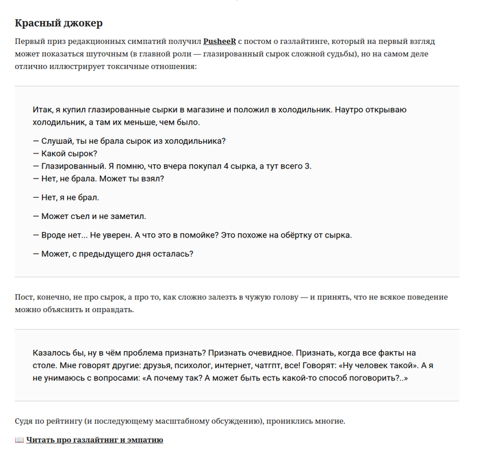офигеть. Я только сегодня заметил! Спасибо редакции за то, что выделила мой пост, для меня это особенно важно, учитывая, дальнейшую дискуссию и различные толкования. Так что мне особенно приятно!