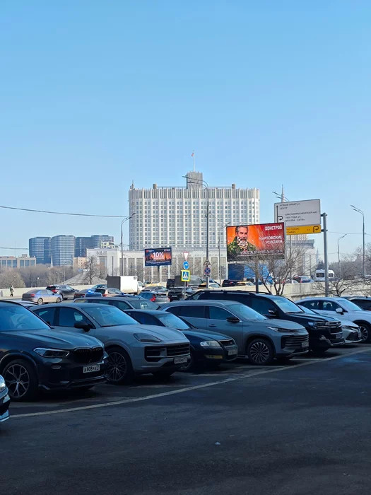 Справа от нее - дом правительства РФ, расстрелянный в 1993: