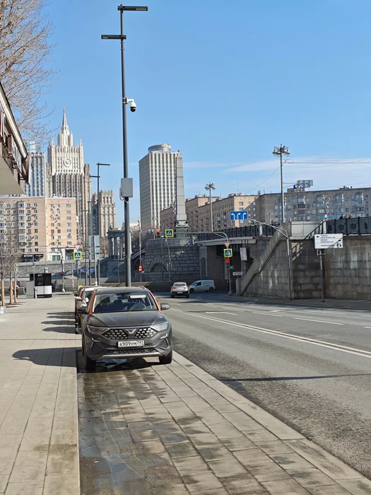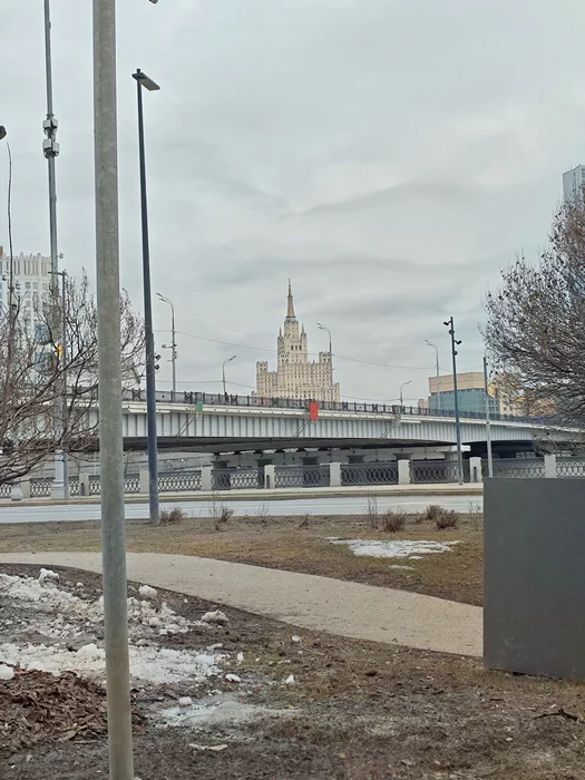 Чуть правее, виден шпиль еще одной высотки на Кудринской площади. Вот она покрупнее: