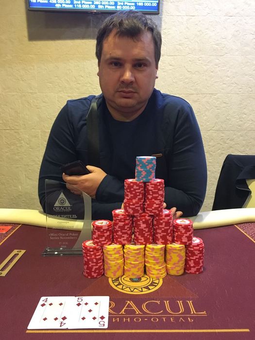 Закончился наш главный турнир очередной мини серии турниров в казино "Оракул" Ещё раз напомню в турнире приняло участие 27 человек Призовой фонд в 1 058 000 руб распределился следующим образом