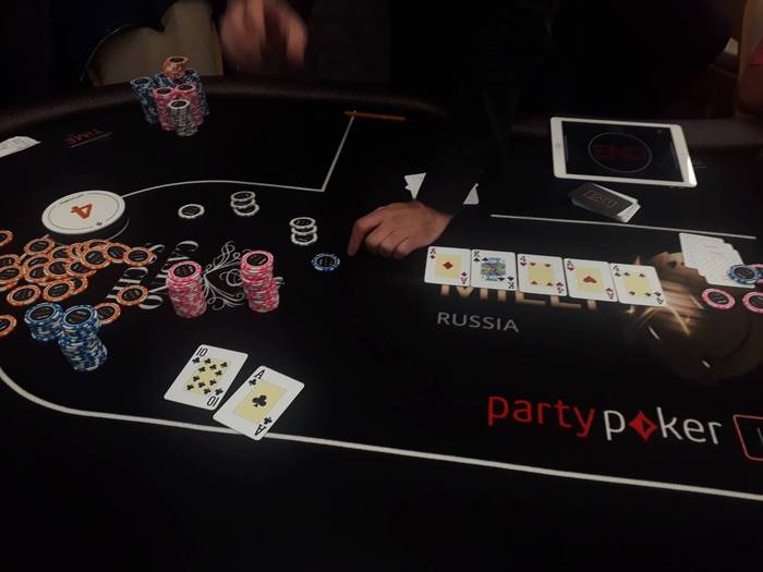 Я рейз с BU A10s то парень что рестилил Q10o и обыграл мой АКо по 27 бб, ставит 3бет, 3.1Х я по динамике пуш, он изи колл КК флоп 4А4 терн К ривер А Стек 47М