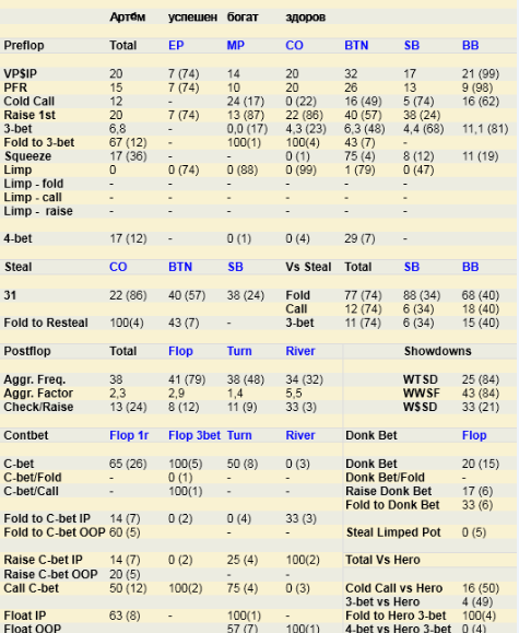 UTG: $2.53 - VPIP: 12, PFR: 8, 3B: 10, AF: 0,0, Hands: 25