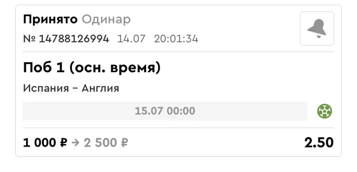Классный второй тайм в финале Евро. В первом как будто Испания опасалась и смотрела, что предложит Англия.