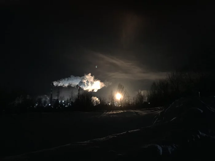 Справа горит факел Метафракса, слева, через реку и мост светится горнолыжка, вокруг снег, метель, -25 и трасса. Естественно, пешеходной зоны нет, ну ничего, идти минут 15, нормально.