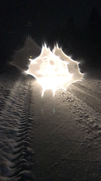 По нужной стороне 😁. Метель метет, встречные машины красиво появляются из темноты.