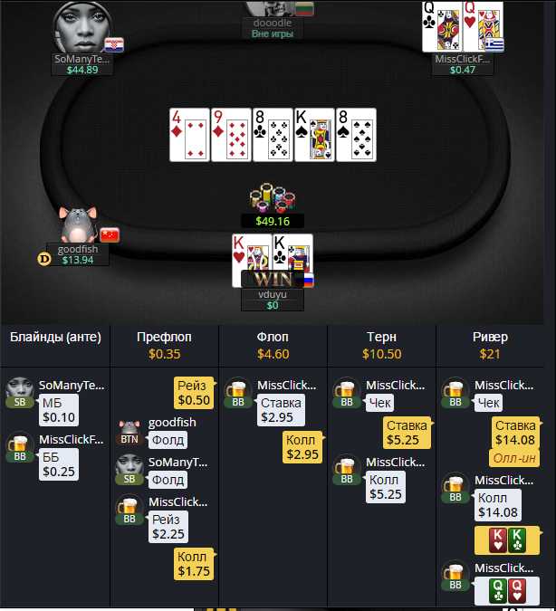 теория с аппом после депозита выдала сегодня исключение, плюсовал максимум 3 бакса, дважды улетал от пика на 25$, отбился в ноль, снова поехал откат, нахуй спать. и да передайте этим пиздюкам, что АК раз из трех во флоп попадать должен все таки, а если я трибечу с королями и какой нибудь гандон коллит, то туз на флоп пореже класть надо, хотя бы пополам, хуй уж с вероятностями, не до жиру.