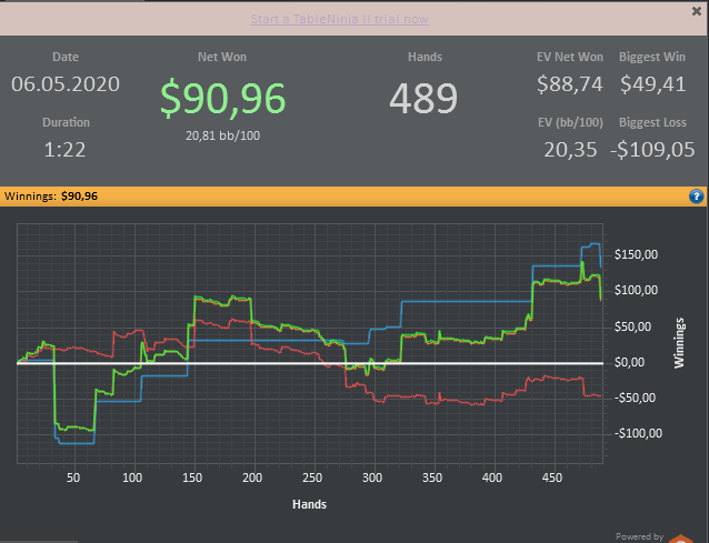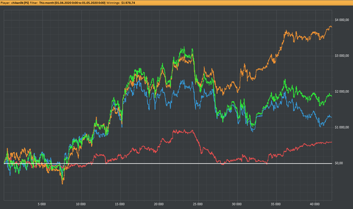 Очень много левых мыслей в голове во время игры, вторую ночь к ряду во сне хороню свою маму, просыпаюсь со страхом, в поту. Нужно собраться с мыслями, и выкинуть плохие в сторону. Как ни как BEST MONTH в покере, хотя бы по EVшке