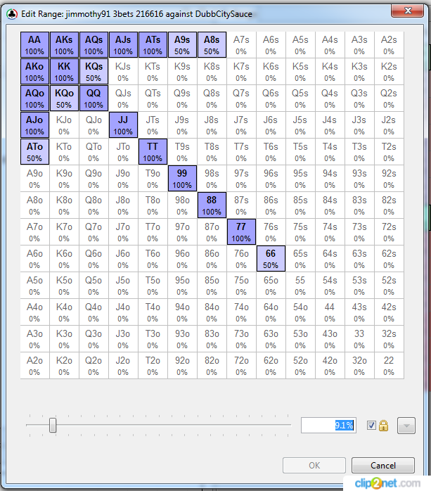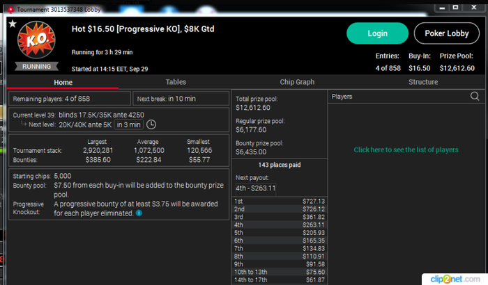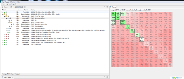 ренж опена тут 50%+, если че-то понимает, катоф не супер нит кстати 18/15, и люди в этой стадии не слепые, видят, что чипак открывается в 3бб стек, вероятно запушит 22+, А2с+ KQ QJс, А9о т.е. прилично рук, которые мы доминируем ну и в монетку тоже хотим поставить, т.к. за него 4би дают, еще и бб часто впишется, что супервыгодно. А ну и в случае победы получаем топ2 стек на финалку с высоким дальнейшим ЕВ.