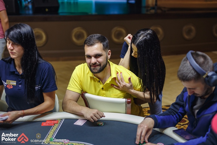 Рзаев в ранней сделал лимп, Шланберов на малом блайнде запушил 100 блайндов. Адиль решил отомстить за вчерашний хедз-ап и нажал на колл с . У Станислава .