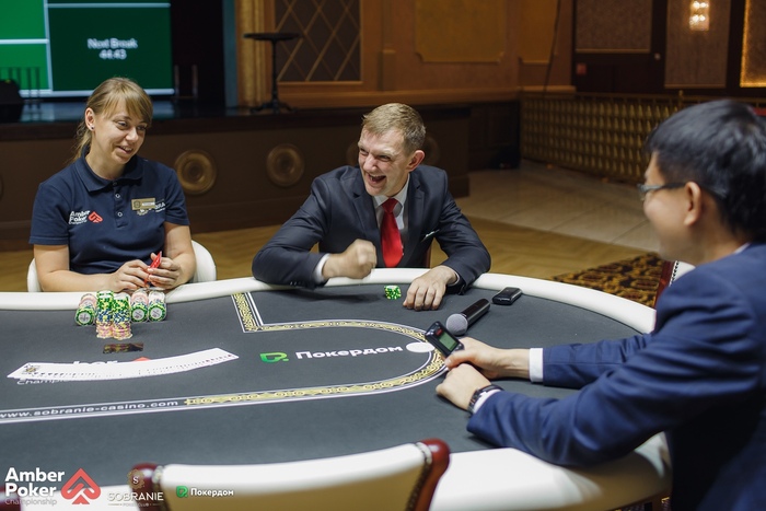 Евгений Мирошниченко (стек 38,900) оказался в тройном олл-ине меж двух огней Евгения Корчагина и Вадима Сахневича. Мирошниченко - . Корчагин - . Сахневич - .