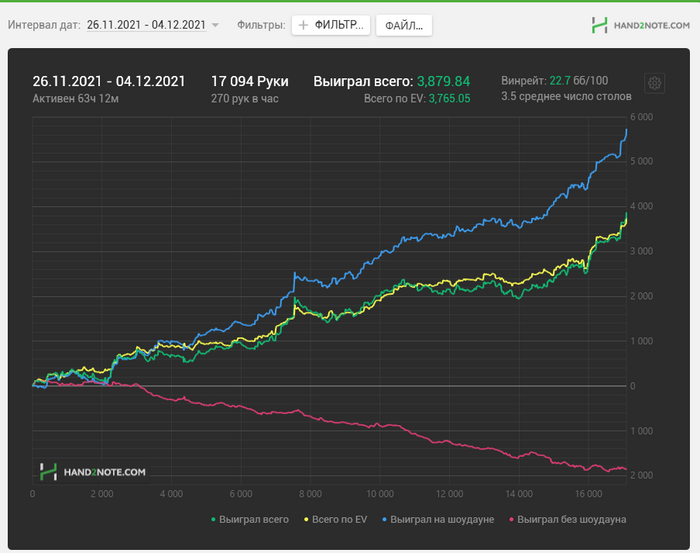 В целом покер идет туго, более подробно опишу детали подведя итоги года, сейчас катаю довольно много, но из-за плохого рана есть ощущение перегорания, делаю отдых до конца недели, дальше проведу завершающий рубеж в виде 5 дней без перерыва до 31-го числа, как раз стартуют разные серии, будем пробовать померяться силами там