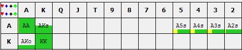 TT-QQ (разбавляя их частью AK/AKs) мы играем колом в стеках 200 бб, нет необходимости превращать их в блеф. Я и A2s тут буду 5-бетить в лучшем случае раз из четырех, учитывая при этом статы оппа, а так лучше на микро 5-бетами в блеф не увлекаться, мне кажется.