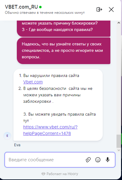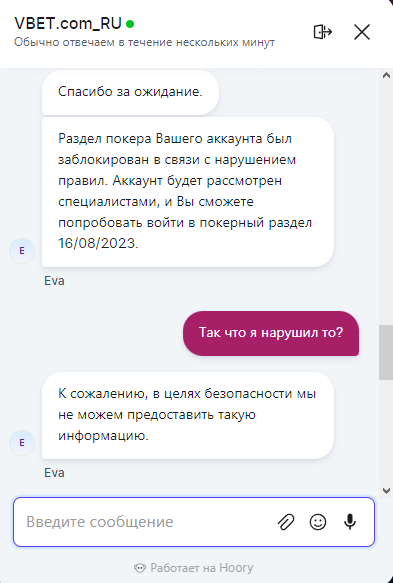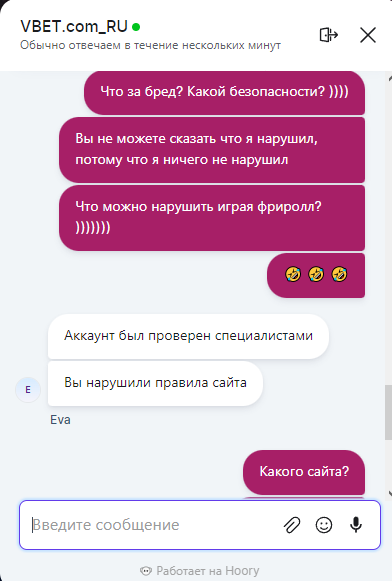 Время от времени ко мне заходит товарищ с ноутом и мы катаем фрироллы. В том числе и на этом руме. Катаем просто по фану, крайне редко, раз в пару месяцев, иногда пару раз в месяц, но такое может раз в год на каких-нибудь новогодних праздниках. В общем всегда всё было нормально, никаких проблем никогда не было, но тут прилетело 2 бана. Попытался разобраться в чём проблема и что мы нарушили, в результате получился вот такой диалог. Оставлю его здесь, возможно кому-то будет полезно и он убережёт вас от потери своих средств. Если нет, просто пропустите мимо этот спойлер в целом.