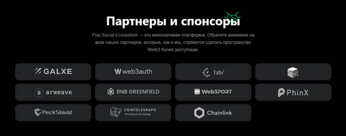 Соц. сеть с довольно серьёзными фондами. Приложение очень свежее, всё ещё находится в тестнете, но токены уже насыпает, правда не известно останутся ли они при полном выходе приложения и вообще будет ли листинг, но я зашёл, так как колонки "Партнёры и спонсоры"