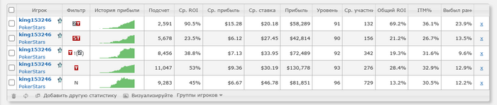 Ну общий сильно зависит от верха загрузки и серийников с байином 530+ сыгранных на выстрел или через сат. Мне кажется, что и из него формулы не следует, а надо смотреть по фильтрам разные структуры, байины и т.д. И то не успеешь набить дистанцию, а составы или структура в этом турнире могут поменяться. Поэтому сомневаюсь, что из шарка вообще реально вычислить даже приблизительно математическое ожидание игрока на текущий момент времени(ну может для снг каких-то).